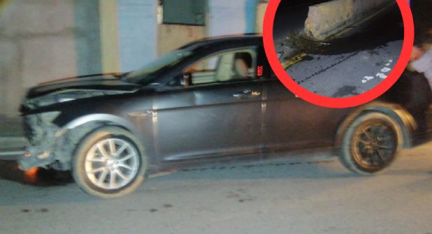 Un hombre en completo estado de ebriedad por poco se mata al chocar su automóvil contra un camellón que divide carriles de la Carretera Aeropuerto, frente a la colonia La Sandía.