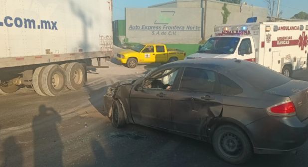 El accidente fue a la altura de la empresa Auto Express Frontera Norte, y de acuerdo con la versión del chofer del camión de carga, el sábado en la mañana salía del corralón de la empresa de transportes y lo hizo con precaución.