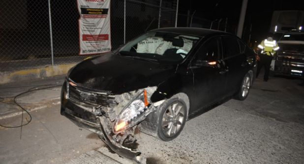Un automóvil fue abandonado por quien lo conducía, luego de que chocó contra un tubo de contención, llamado “fantasma” en el parque industrial Dos Laredos.