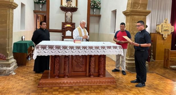 Seguiré y promoveré la disciplina común a la iglesia y observaré todas las leyes eclesiásticas ante todas aquellas contenidas en el código de derecho canónico con obediencia cristiana, acataré lo que enseñan los sagrados pastores como doctores y maestros auténticos de la fe y lo que establezcan como guías de la iglesia, le ayudaré fielmente al obispo diocesano en la acción Pastoral y la ejerceré en comunión con él", expresó el Padre Jesús Tijerina después de realizar el juramento de fidelidad y la profesión de fe.