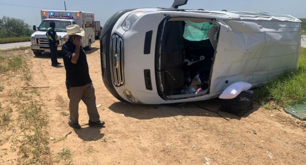 Dos paisanos, un hombre y una mujer, por poco mueren tras registrarse una volcadura sobre el Libramiento Mex-2, cuando se dirigían de Dallas, Texas a San Luis Potosí.