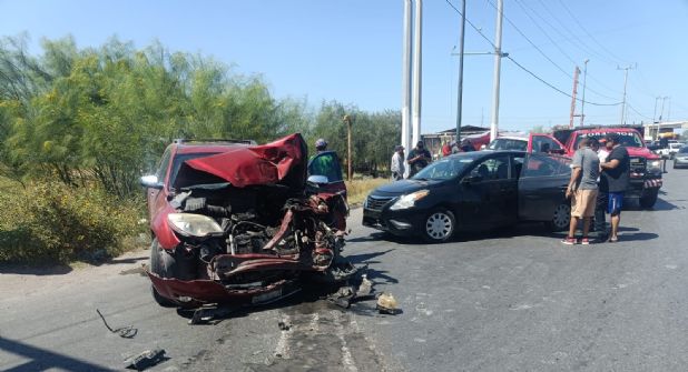 Una camioneta Chevrolet Equinox quedó destrozada por el tren en el cruce de las vías ferroviarias ubicadas en la Carretera Anáhuac a unos metros de la entrada a la colonia Villas de San Miguel, luego de que a la conductora del vehículo particular presuntamente le fallaran los frenos.