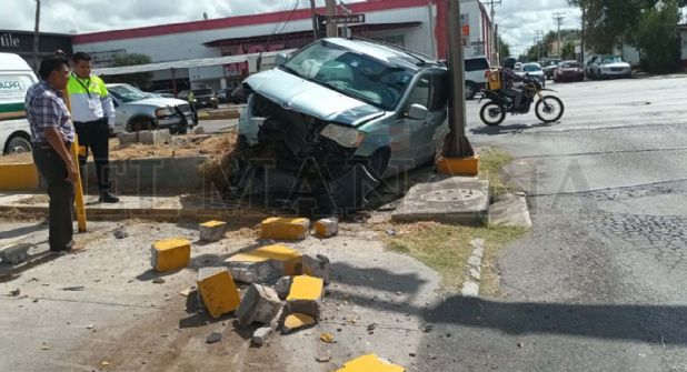 Llegando a la calle Lincoln, la mujer giró hacia el poniente y tal parece que lo hizo a gran velocidad, ya que en medio del camino se descontroló y fue a chocar contra la base de la jardinera, pasándole rozando el poste del semáforo, quedando el vehículo arriba de los escombros de cemento.