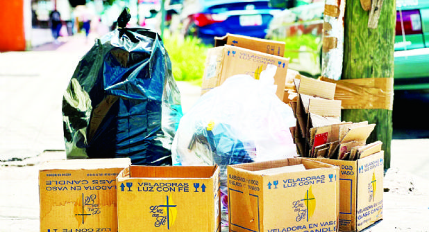 Otro de los ejemplos es en el sector centro, donde algunos comercios han dejado cajas y bolsas negras con residuos, que poco a poco se acumulan o bien la basura se convierte en tapones de alcantarillas.