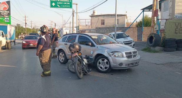 El motociclista salió proyectado hacia el pavimento, sufriendo un golpe en una pierna, que no requirió su traslado a un hospital, así lo indicaron paramédicos que lo atendieron.