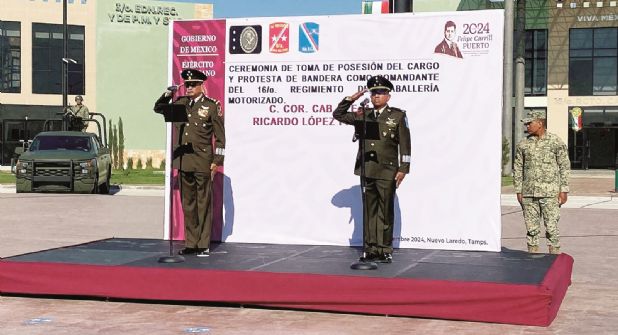 El Coronel de Caballería Diplomado del Estado Mayor Presidencial, Ricardo López Palafox, tomó posesión y protesta de Bandera como nuevo Comandante del Décimo Sexto Regimiento de Caballería Motorizado, ayer sábado durante una ceremonia cívica realizada en el Cuartel Militar.