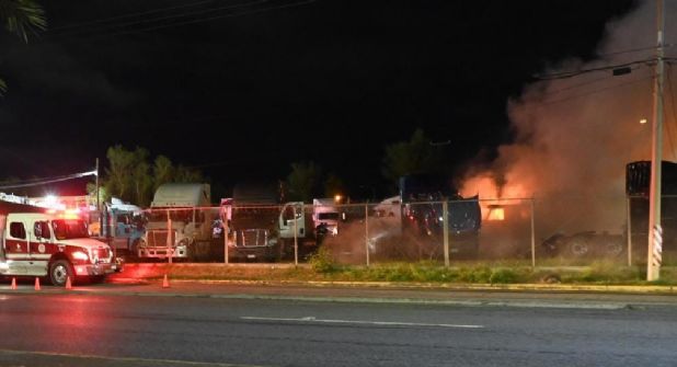 Esta noche en el Kilómetro 12 de la Carretera Nacional, en Nuevo Laredo, Tamaulipas, se reportaron cuatro tráileres incendiándose.