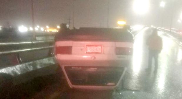 Cinco personas que viajaban en un automóvil compacto se salvaron de morir, luego de que quien conducía la unidad chocó contra un muro de concreto y se volcó en el puente vehicular del entronque de las carretera Aeropuerto y Piedras Negras.