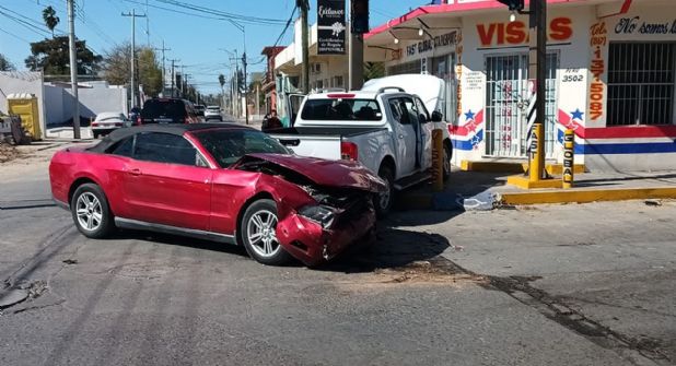Cuantiosos daños materiales dejó como saldo un aparatoso accidente entre una camioneta y un automóvil semideportivo, provocado por un joven que no respetó la luz roja del semáforo en un crucero de la colonia Juárez.