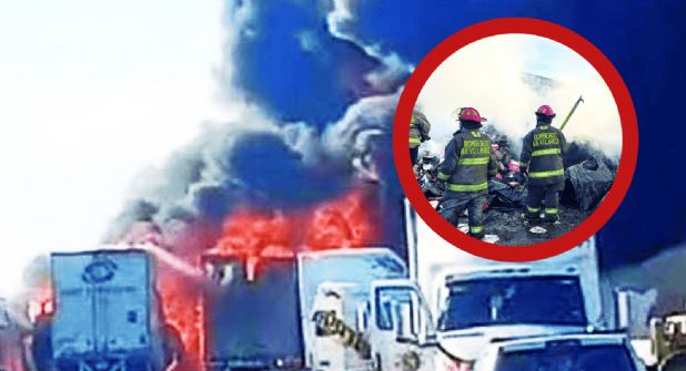 Al menos tres cajas de tráiler y una plataforma fueron consumidas en su totalidad, luego de que se incendiaron al interior de una línea de transportes ubicada en el libramiento Mex 2.