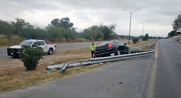 Un automóvil fue abandonado por quien lo conducía después de que se llevó de encuentro un tramo de barandal de contención en el Bulevar Colosio, al oriente de Nuevo Laredo.