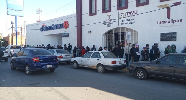 La Oficina Fiscal del Estado en Nuevo Laredo se encuentra actualmente abarrotada personas que acudieron hoy, lunes 6 de enero, a realizar diversos trámites en la dependencia, luego del anuncio de que habrá grandes descuentos.