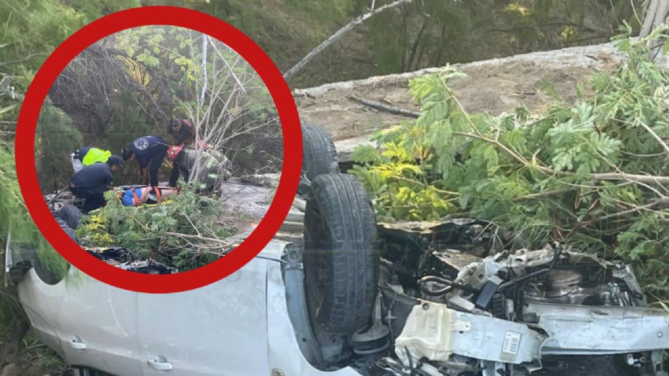 Una mujer sufrió un aparatoso accidente automovilístico esta mañana al perder el control de su vehículo Chevrolet Aveo modelo 2018 y precipitarse a un barranco.