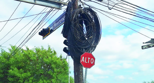 Mala imagen urbana, contaminación visual y un peligro latente representan las toneladas de cables que sin tener uso cuelgan en los postes de diferentes sectores de Nuevo Laredo, mismos que han permanecido en ocasiones hasta por décadas sin proveer de ningún servicio o tener alguna utilidad.