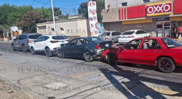 Dos mujeres resultaron lesionadas en un choque múltiple que involucró cuatro vehículos, en hechos registrados el lunes por la tarde en el crucero de la avenida Obregón y la calle Lincoln.