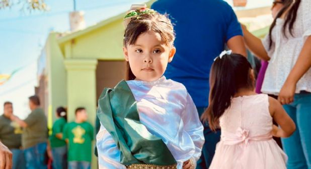 Ataviada con el atuendo de San Judas Tadeo, la pequeña Scarlet Covarrubias acudió junto a su madre Jaqueline Rangel para acompañar al Santo Patrono en su aniversario y agradecer los favores recibidos.
