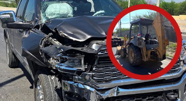 Un choque por alcance se registró en la Carretera Aeropuerto, al sur de Nuevo Laredo, involucrando a una camioneta y una retroexcavadora.
