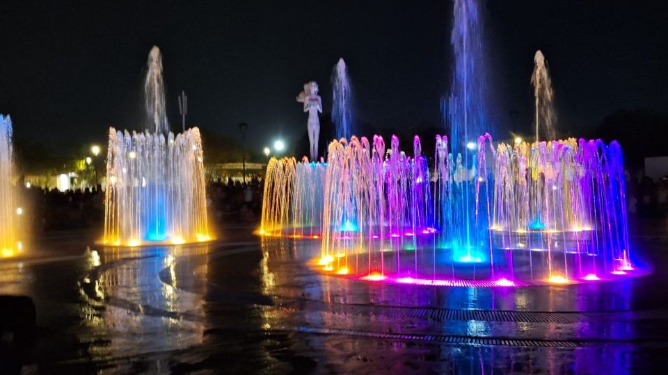 Al centro, la fuente interactiva, de 540 metros cuadrados, se activó por primera vez mostrando su coreografía de chorros de agua ascendentes y luces secuenciales.
