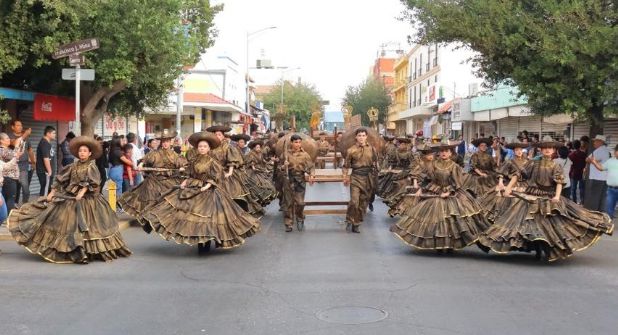Y aunque en redes sociales se destaca la participación de las mujeres con la ropa de las adelitas o soldaderas, llamadas así aquellas que participaron en la Revolución Mexicana de 1914 a 1917, en el desfile también participaron 12 jóvenes, quienes también vistieron de bronce.