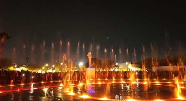 Al centro se localiza la Fuente Danzante interactiva, de 540 metros cuadrados la cual brindará un espectáculo visual de luces y música el cual estará disponible de miércoles a domingo con 3 shows por día con un horario de 8:00 pm, 9:00 pm y el último a las 10:00 pm.