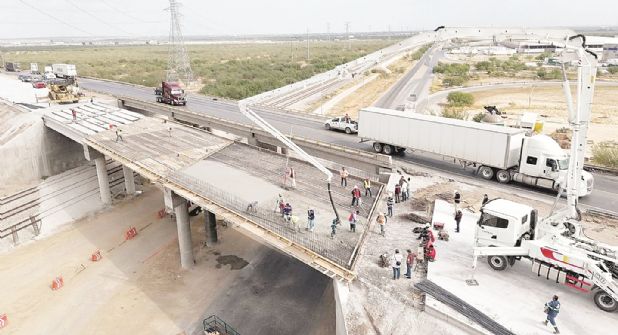 La alcaldesa Carmen Lilia Canturosas Villarreal informó que recientemente se realizó el colado de la losa sur del puente, la primera de las tres losas que conformarán la estructura total.