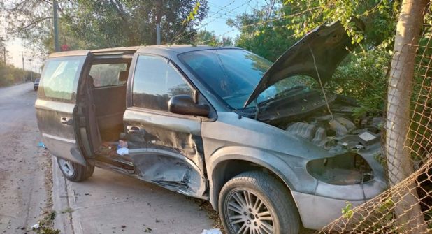 Tras cruzar la señal de alto, el conductor de un automóvil se llevó de encuentro una camioneta conducida por una mujer y la proyectó hacia el terreno de un domicilio en la colonia Primavera, al sur de Nuevo Laredo.