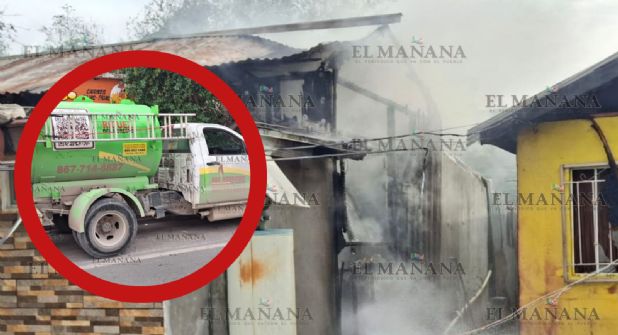 Después de abastecer un tanque de gas butano estacionario, el trabajador de la gasera no pudo desconectar la manguera y de los intentos que hizo, se reventó, ocasionando un fuerte flamazo, que se convirtió en un voraz incendio que dañó una casa de madera.
