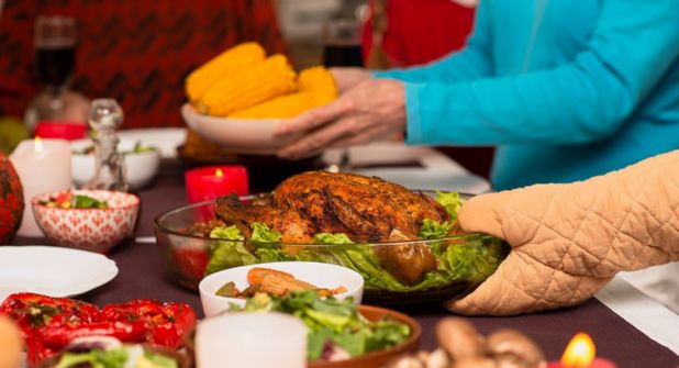 El primero de nuestra lista es el famoso pavo el cual suele ser acompañado por puré de papa, ensalada de manzana, spaghetti o pasta, gravy, relleno de carne molida y algún postre.