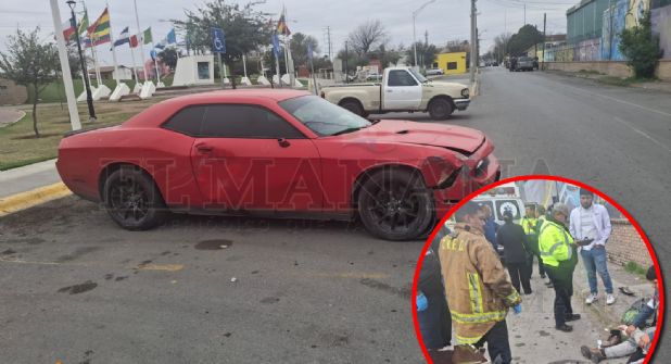 Un joven motociclista resultó con un pie lastimado al estrellarse contra el costado de un auto Dodge Challenger en hechos registrados frente a la Plaza Simón Bolívar.