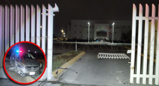 “Venia un poco recio y en la curva perdí el control, subiéndome a la banqueta”, fue la declaración del conductor de un auto Mazda 2014, quien la madrugada del domingo se llevó de encuentro el portón principal del Palacio de Justicia de Nuevo Laredo.