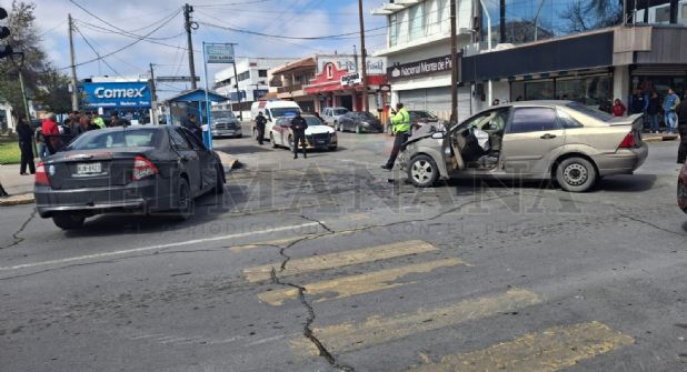 Daños materiales de consideración dejó el accidente vial registrado en las calles de Guerrero y Arteaga y en este caso, los conductores de los vehículos involucrados alegaban tener luz verde a su favor, por lo que necesaria la intervención de las autoridades viales para que realizaran el peritaje correspondiente y deslindaran responsabilidades.