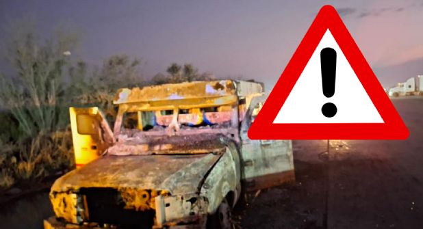 Un camión de valores fue consumido en su totalidad luego de que se incendió mientras circulaba por el Libramiento Mex 2, al poniente de Nuevo Laredo.