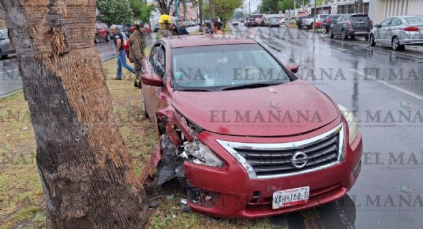 Luego del encontronazo, el Áltima se fue a estrellar contra una palma del camellón central del Bulevar Pérez Ibarra. El accidente ocurrió el mediodía de este jueves, sobre el Bulevar Pedro Pérez Ibarra, a unos metros del COBAT.