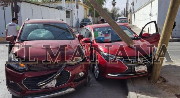 Del impacto, los dos vehículos se proyectaron hacia la esquina norponiente del crucero y el Changan pegó contra el poste de madera y lo partió el dos, cayendo parte del madero en el cofre del automóvil.