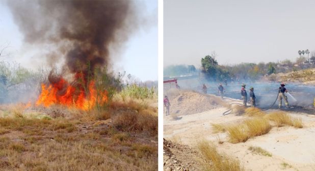 Otro incendio de zacatal fue reportado en la colonia Lomas del Río, donde vecinos se alertaron ya que se propagó rápido y solicitaron la intervención de bomberos, hasta en redes sociales pidieron el apoyo porque temían se extendiera por las rachas de viento.