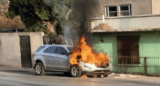 Una camioneta Chevrolet Equinox sufrió graves daños luego de que se incendió mientras su conductor iba en ella circulando por la calle Venezuela, en la colonia Matamoros.