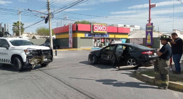 Personal militar de la Guardia Nacional presuntamente protagonizó un nuevo accidente vial en esta frontera, luego de que una patrulla oficial se pasara un alto y chocara contra un vehículo particular, generando indignación entre los ciudadanos por la constante imprudencia de las fuerzas federales en las calles.