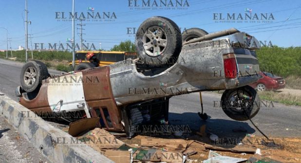 Tras ser impactados por la caja que transportaba un tráiler, una familia de cinco integrantes que viajaba en una camioneta cargada con botes de desperdicios, volcó sobre el Segundo Anillo Periférico, frente a Villas de San Miguel, resultando todos ilesos.