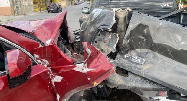 Un aparatoso choque fue provocado por el conductor de una camioneta Chevrolet Trasverse que, por ir a exceso de velocidad en las calles de la Colonia Hidalgo, perdió el control del volante, estampándose contra la parte trasera otra troca estacionada.
