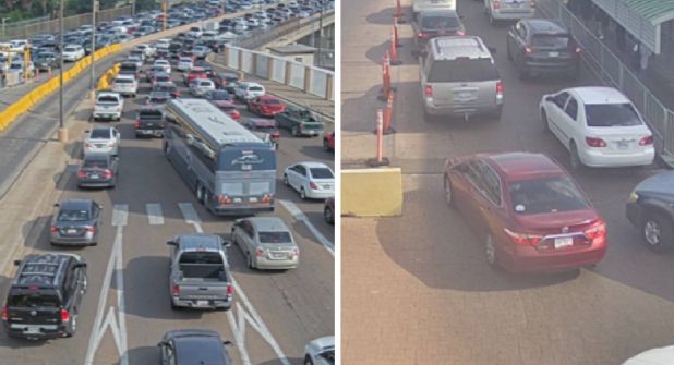 Tanto el Puente de las Américas, en su dirección hacia Nuevo Laredo, como el Puente Internacional Juárez-Lincoln en ambas direcciones, lunes abarrotados de vehículos que están cruzando en estos momentos.