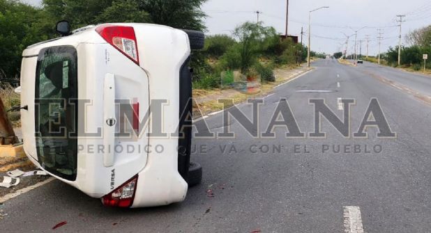 Se trata de un Nissan Versa modelo 2019, perteneciente a una empresa de servicios y mantenimiento Reynosa, que quedó sobre uno de sus costados.