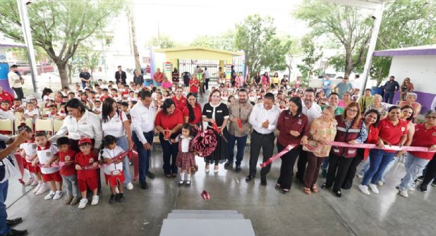 También se realizó la entrega de la rehabilitación de techumbre en el Jardín de Niños Club Sertoma Nuevo Laredo No.4, que beneficiará a 207 estudiantes que ahora contarán con un espacio seguro para la realización de actividades al aire libre. En esta obra se invirtieron 589 mil 313 pesos.