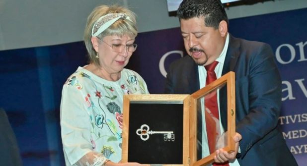 En una emotiva ceremonia realizada en la tierra natal de Belisario Domínguez, autoridades locales, estatales y representantes del Senado de la República rindieron homenaje a la periodista y activista Ninfa Deándar Martínez, a quien entregaron simbólicamente las llaves de la ciudad por su destacada trayectoria en el periodismo y su compromiso con la libertad de expresión.