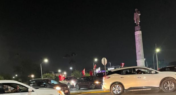 Pocos, pero bien gritones, los seguidores de los Diablos Rojos del Toluca en Nuevo Laredo armaron su escándalo al pie del monumento a Benito Juárez, sitio adoptado por los aficionados para festejar los triunfos de sus ídolos deportivos.
