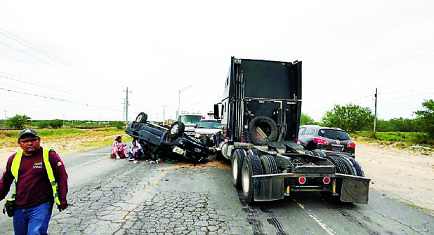 Un hombre y una mujer se salvaron de morir de forma trágica, esto después de sufrir un aparatoso accidente en la Carretera a Anáhuac en Nuevo Laredo esto tras volcar en su camioneta y posteriormente ser impactada por un tráiler.