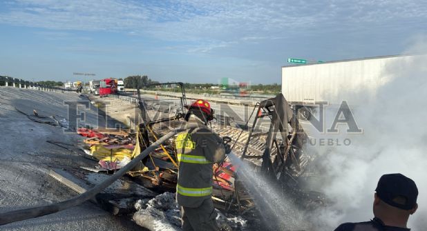 La autopista volvió a teñirse de sangre al registrarse un choque entre un tráiler que pegó contra otros dos unidades presuntamente estacionadas y después se calcinó con su chofer en el interior.