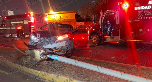En Nuevo Laredo, muy endeudada quedó una joven mujer que con su carro Chevrolet Aveo recién comprado, se llevó de encuentro uno de los postes de alumbrado público propiedad del R. Ayuntamiento y a pesar del desaguisado, la damita salió bien librada, pero fue retenida por manejar con aliento alcohólico.