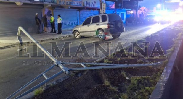 La ponchadura de una llanta delantera de una camioneta Chevrolet Tracker, provocó que su conductor perdiera el control gachamente y brincara el camellón de la Calzada Revolución y se llevara de encuentro un poste del alumbrado público.