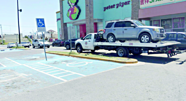 “Hemos estado yendo a tiendas comerciales, traemos tres vehículos tipo grúa en los lugares para discapacitados, la gente tiene que respetar ese lugar, nos lo estamos llevando nosotros a nuestro propio corralón, ya presenta la acreditación de su propiedad, pagan su sanción y se lleva su vehículo”, comentó Armando de la Torre, director de Tránsito y Vialidad.