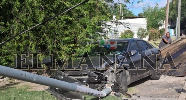 Chocado contra un poste de alumbrado público quedó un carro Hyundai de reciente modelo cuyo conductor lo estrelló y derribó por completo y tal parece que el responsable la libró, ya que se bajó y se dio a la fuga ayudado por unos amigos.